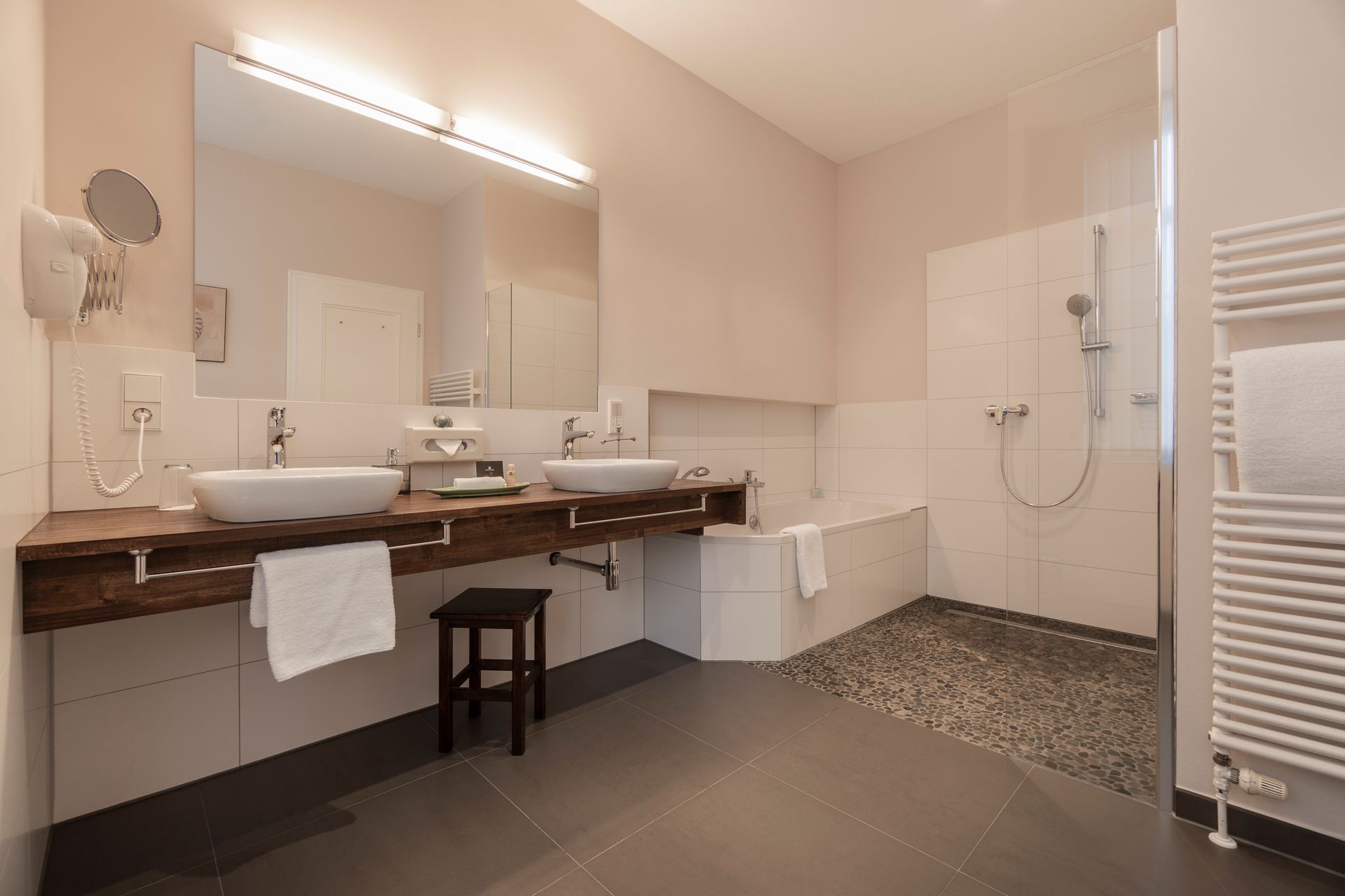 Our elegant bathroom impresses with its stylish design, high-quality furnishings, and plenty of space to relax.